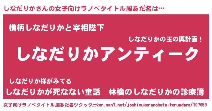 | 意味不明あだ名 | 『自称しなだりか』『ペロリンしなだりか』 |