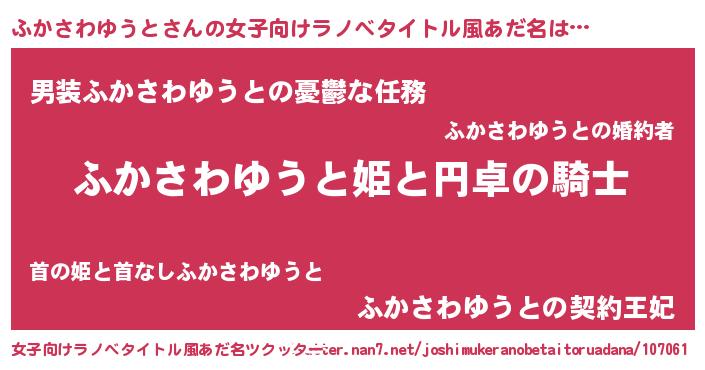 | 男性向けラノベタイトル風あだ名 | 『ふかさわゆうとの憂鬱』 |