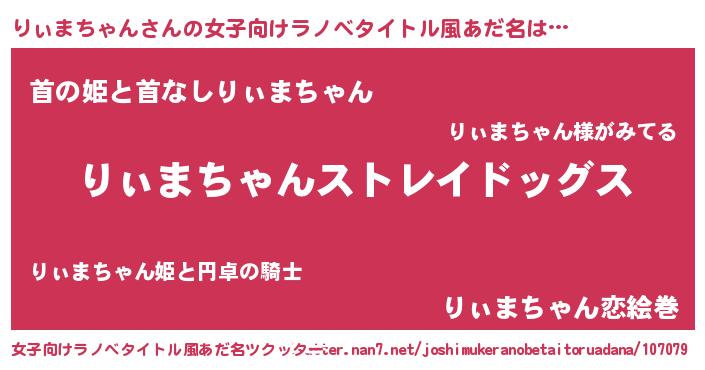 | 男性向けラノベタイトル風あだ名 | 『Re:りぃまちゃんから始める異世界生活』 |