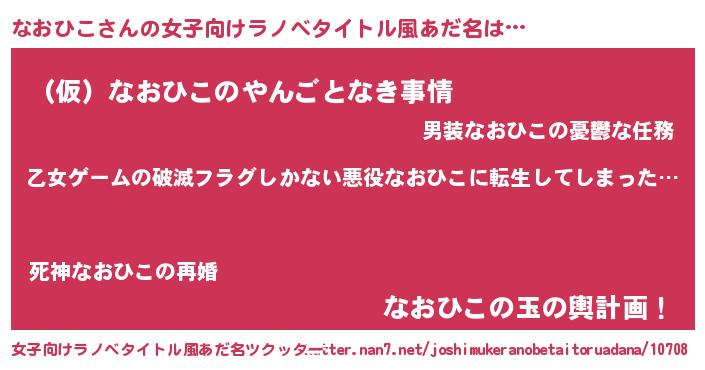 | 男性向けラノベタイトル風あだ名 | 『この素晴らしい世界になおひこを!』 |