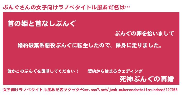 | 男性向けラノベタイトル風あだ名 | 『転生したらぶんぐだった件』 |