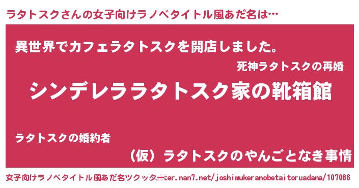 | ヘコむあだ名 | 『ラタトスク(爆)』『ラタにゅー』 |