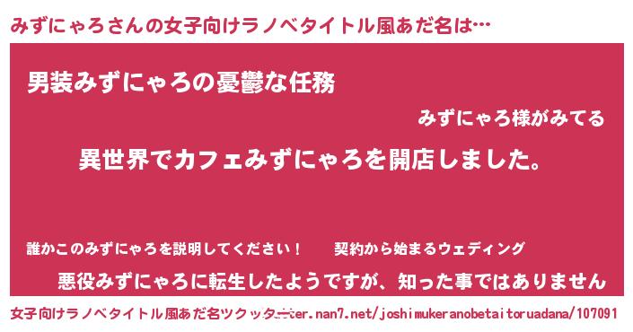 | ヘコむあだ名 | 『みずにゃろ(笑)』『みずお』 |