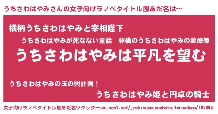 | 男性向けラノベタイトル風あだ名 | 『ダンジョンにうちさわはやみを求めるのは間違っているだろうか』 |