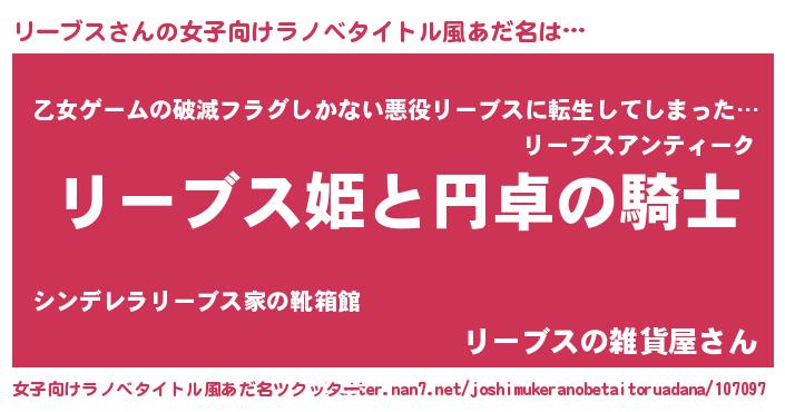 | 胡散臭い通販商品みたいなあだ名 | 『モテモテ間違いなしブレスレット…その名も「リーブス」』 |