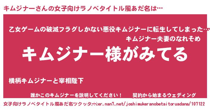 | 男性向けラノベタイトル風あだ名 | 『キムジナーの嫁は女の子じゃないと思った?』 |