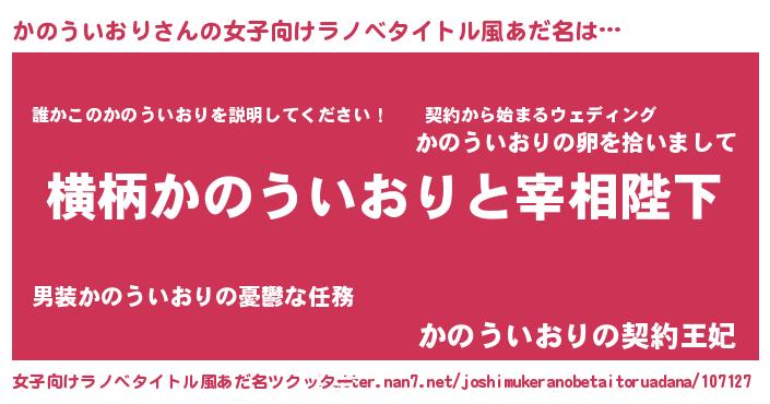 | ヘコむあだ名 | 『かのにー』『かのういおり(爆)』 |