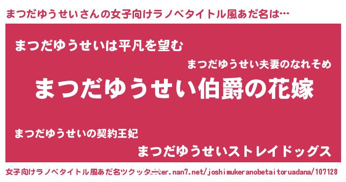 | 男性向けラノベタイトル風あだ名 | 『やはりまつだゆうせいの青春ラブコメはまちがっている 』 |