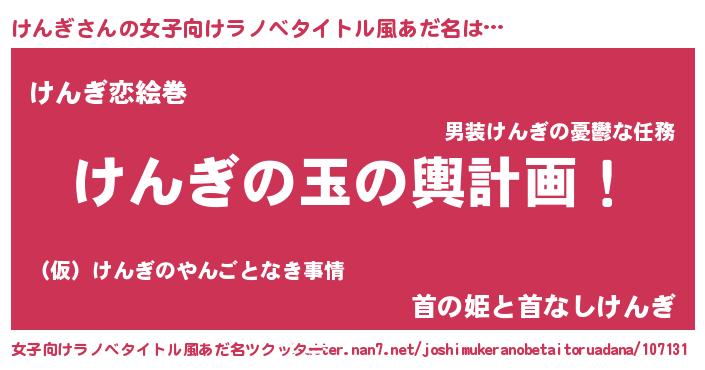 | 男性向けラノベタイトル風あだ名 | 『転生したらけんぎだった件』 |