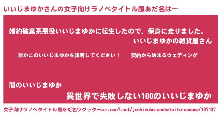 | 胡散臭い通販商品みたいなあだ名 | 『億万長者になれるブレスレット…その名も「いいじまゆか」』 |