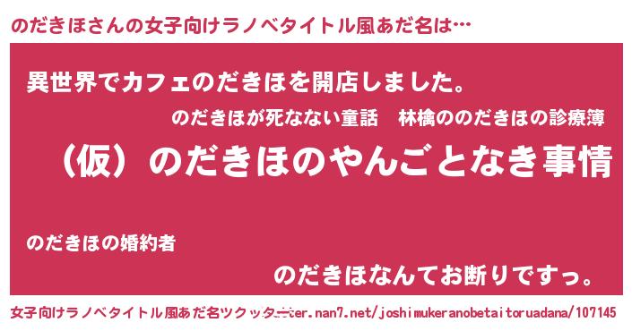 | 男性向けラノベタイトル風あだ名 | 『のだきほの憂鬱』『魔弾の王とのだきほ』 |