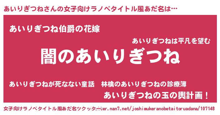| 男性向けラノベタイトル風あだ名 | 『Re:あいりぎつねから始める異世界生活』 |