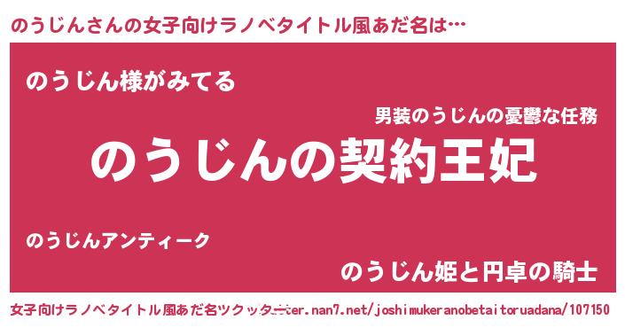 | 男性向けラノベタイトル風あだ名 | 『のうじんという概念が存在しない退屈な世界 』 |