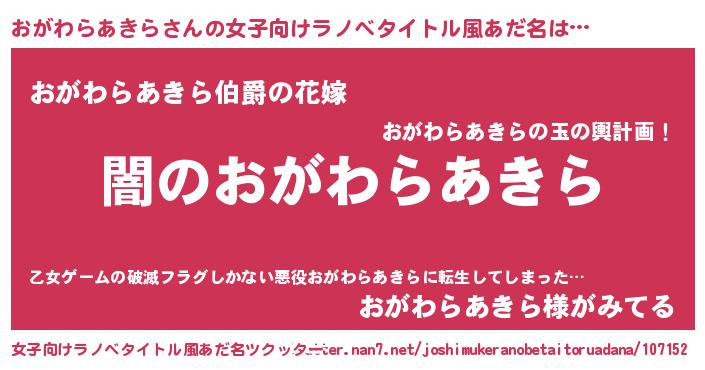 | 男性向けラノベタイトル風あだ名 | 『Re:おがわらあきらから始める異世界生活』 |