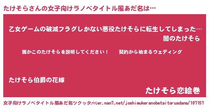 | 男性向けラノベタイトル風あだ名 | 『タケソラアートオンライン』 |