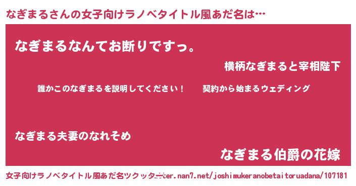 | 胡散臭い通販商品みたいなあだ名 | 『億万長者になれる水晶球…その名も「なぎまる」』 |
