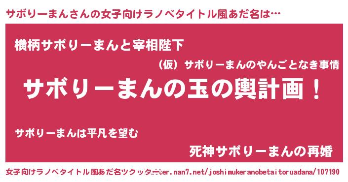 | 男性向けラノベタイトル風あだ名 | 『サボりーまん~年齢イコール彼女いない歴の魔法使い~』 |