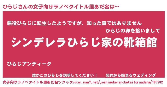 | 胡散臭い通販商品みたいなあだ名 | 『世界中を虜にした100年もののヴィンテージワイン…その名も「ひらじ」』 |