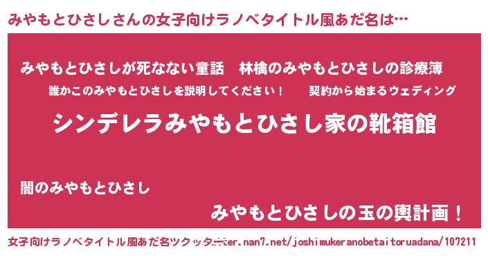 | ヘコむあだ名 | 『みやふぇ~』『みやもとひさし(震え声)』 |