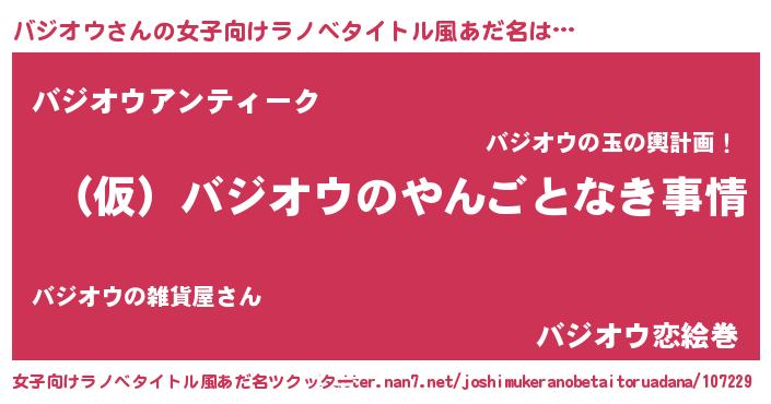 | 男性向けラノベタイトル風あだ名 | 『バジオウの憂鬱』 |