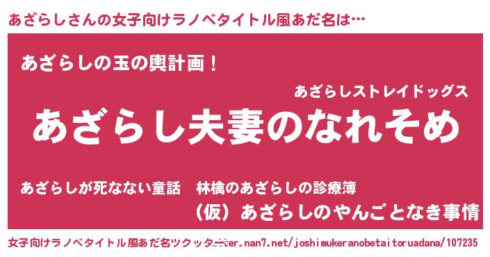 | ヘコむあだ名 | 『あざにー』『レバニラ』 |