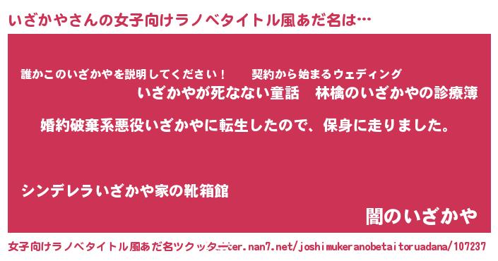 | 男性向けラノベタイトル風あだ名 | 『イザカヤスレイヤー』『緋弾のイザカヤ』 |