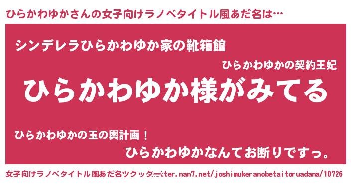| 男性向けラノベタイトル風あだ名 | 『ひらかわゆかの嫁は女の子じゃないと思った?』 |