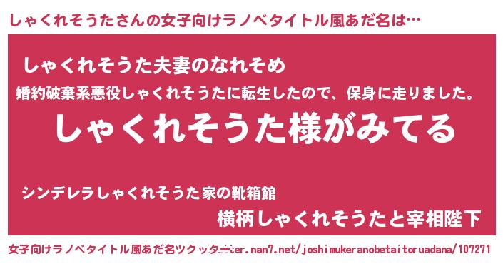 | 男性向けラノベタイトル風あだ名 | 『しゃくれそうたの嫁は女の子じゃないと思った?』 |