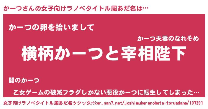 | 男性向けラノベタイトル風あだ名 | 『かーつに滅ぼされるだけの簡単なお仕事です』 |