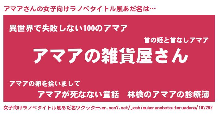 | 男性向けラノベタイトル風あだ名 | 『やはりアマアの青春ラブコメはまちがっている 』 |