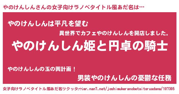 | 男性向けラノベタイトル風あだ名 | 『やのけんしんの憂鬱』 |