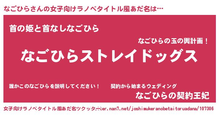 | 男性向けラノベタイトル風あだ名 | 『Re:なごひらから始める異世界生活』 |