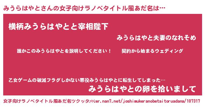 | 胡散臭い通販商品みたいなあだ名 | 『億万長者になれるブレスレット…その名も「みうらはやと」』 |