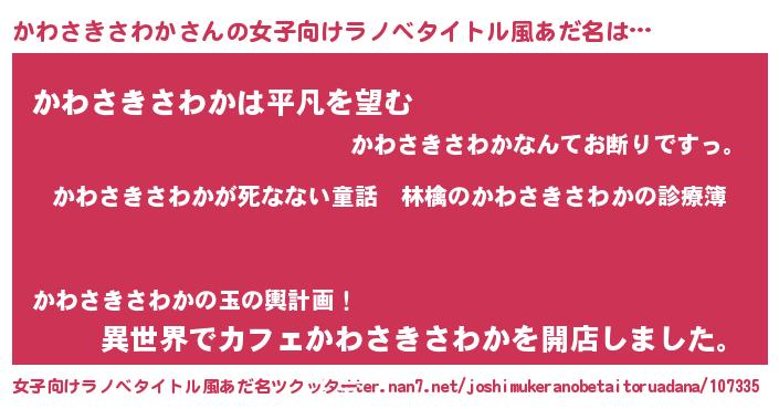 | 男性向けラノベタイトル風あだ名 | 『魔弾の王とかわさきさわか』 |