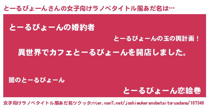 | 意味不明あだ名 | 『永久保存とーるびょーん』 |