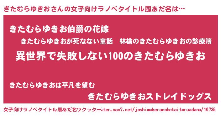 | 男性向けラノベタイトル風あだ名 | 『きたむらゆきおという概念が存在しない退屈な世界 』 |