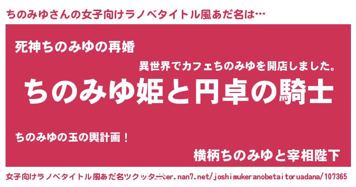 | 男性向けラノベタイトル風あだ名 | 『ちのみゆの憂鬱』 |