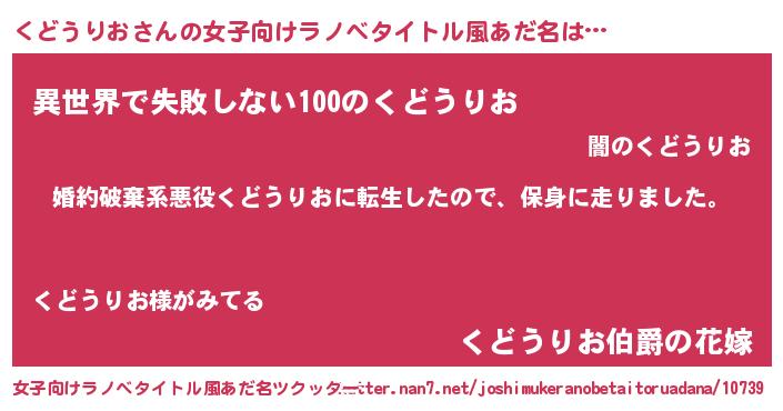 | 男性向けラノベタイトル風あだ名 | 『クドウリオスレイヤー』 |