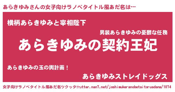 | 男性向けラノベタイトル風あだ名 | 『あらきゆみという概念が存在しない退屈な世界 』 |