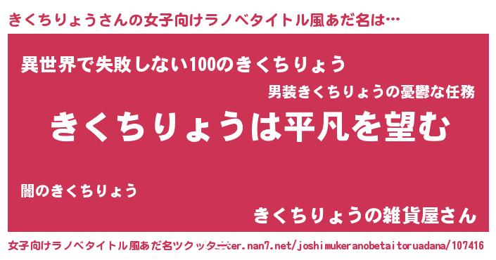 | 意味不明あだ名 | 『とにかく怪しいきくちりょう』 |