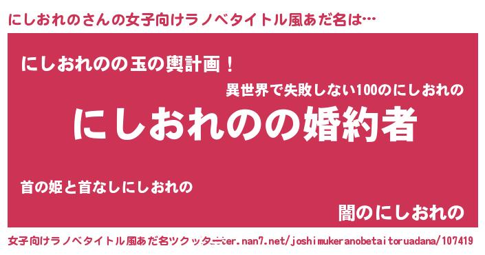 | 胡散臭い通販商品みたいなあだ名 | 『運命の人と巡り会える高級そうな壺…その名も「にしおれの」』 |