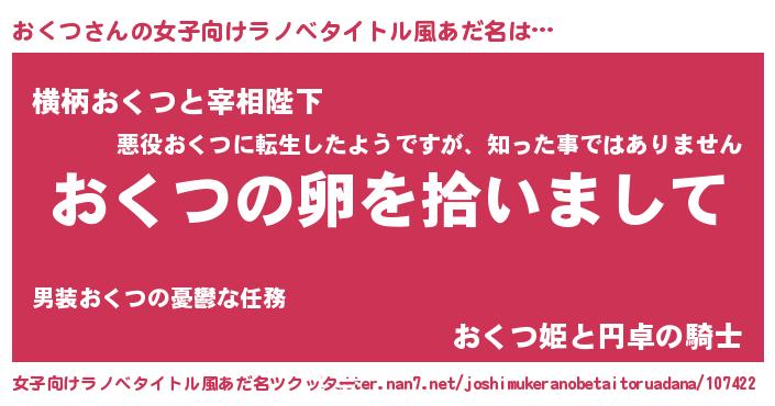 | 男性向けラノベタイトル風あだ名 | 『ダンジョンにおくつを求めるのは間違っているだろうか』 |