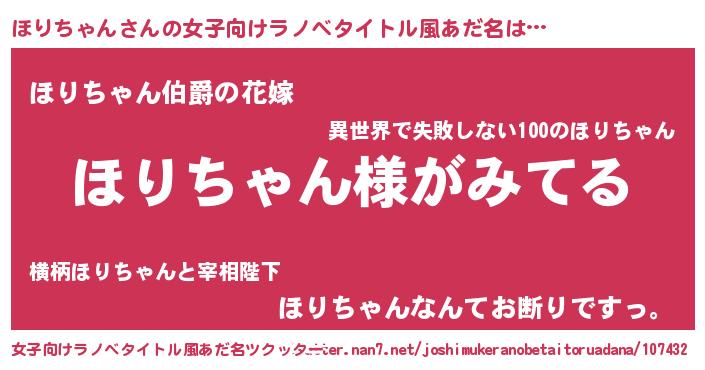| 男性向けラノベタイトル風あだ名 | 『ほりちゃんの嫁は女の子じゃないと思った?』 |