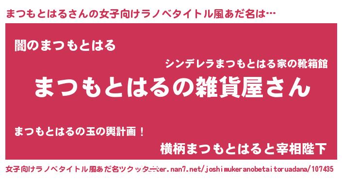 | 意味不明あだ名 | 『まつもとはるフォーエバー』 |