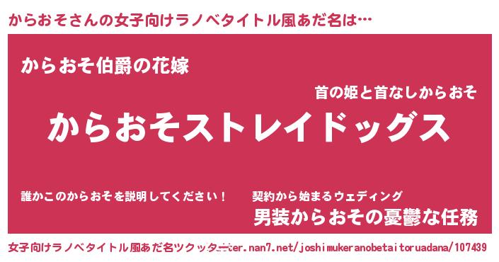 | 男性向けラノベタイトル風あだ名 | 『Re:からおそから始める異世界生活』 |