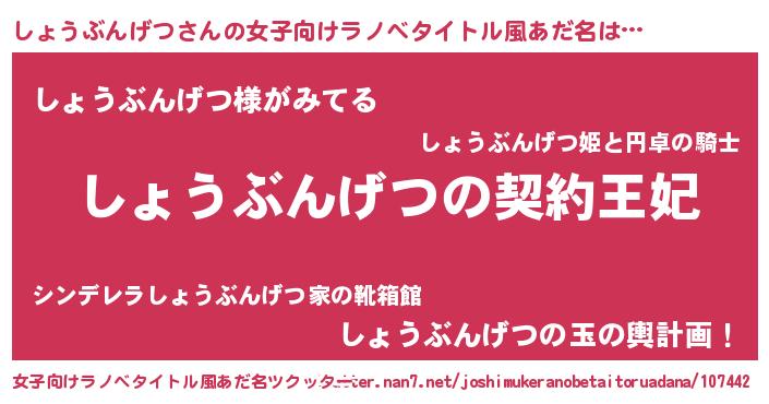| 意味不明あだ名 | 『永久保存しょうぶんげつ』 |