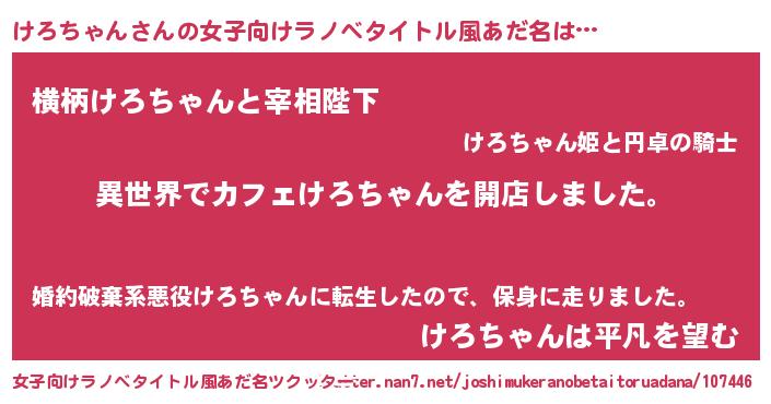 | 男性向けラノベタイトル風あだ名 | 『誰もが恐れるあのけろちゃんが、ぼくの専属メイドになるようです。』 |