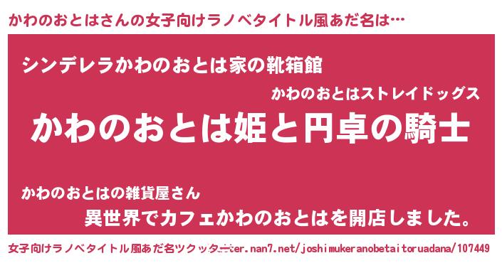 | 男性向けラノベタイトル風あだ名 | 『カワノオトハアートオンライン』 |
