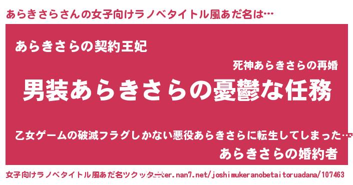 | 胡散臭い通販商品みたいなあだ名 | 『来世でも幸せになれる健康食品…その名も「あらきさら」』 |