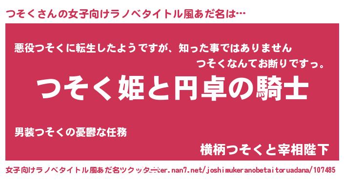 | 男性向けラノベタイトル風あだ名 | 『つそくの憂鬱』『魔法科高校のつそく』 |